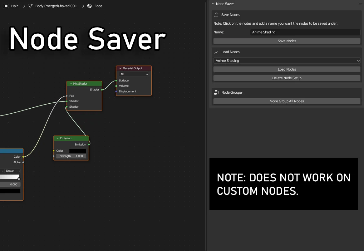 Node Saver is an add-on that allows users to store and reuse node setups across different Blender project files without relying on the append function. It operates directly on ungrouped nodes, eliminating the need to organize nodes into groups before saving them. The tool adds a dedicated panel in the Shader Editor interface for quick access. It is currently designed for standard node configurations and does not support heavily modified custom nodes.