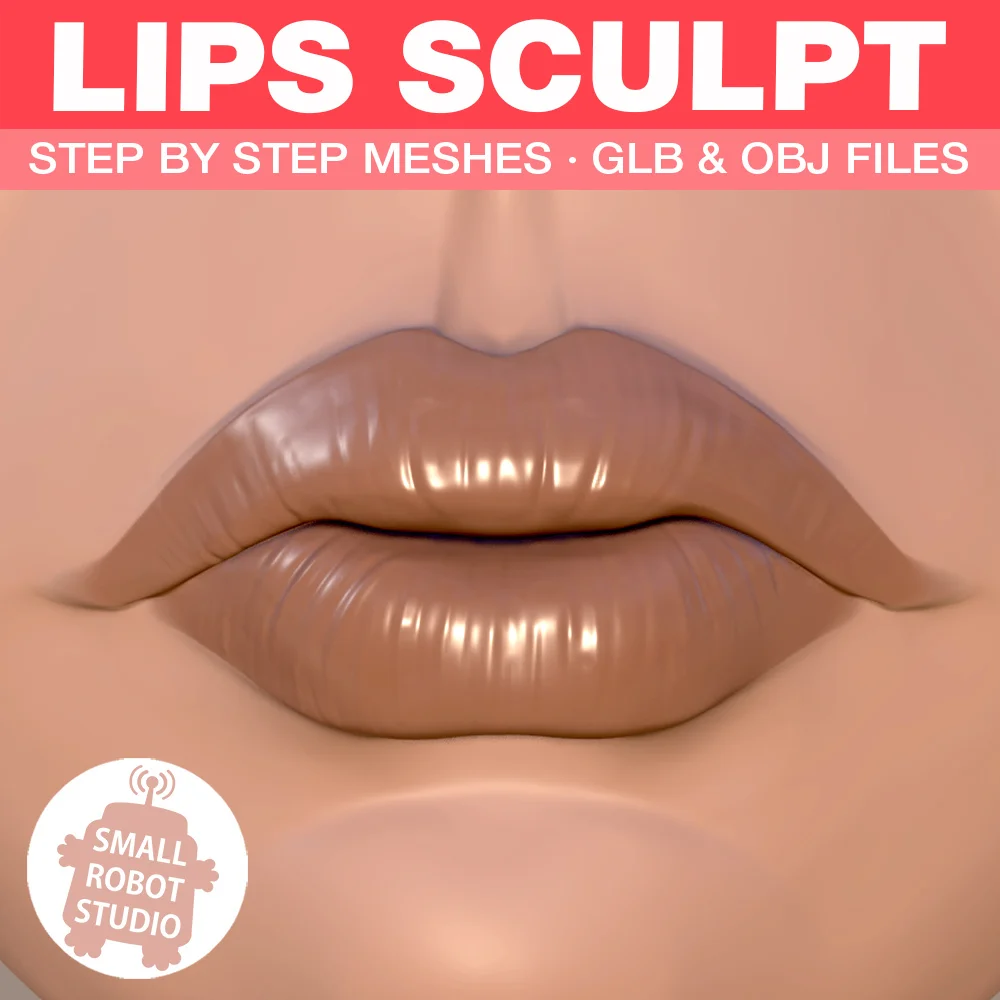 This reference pack provides 3D meshes designed to assist with digital sculpting and anatomy study. It includes step-by-step progression models illustrating the lip sculpting process, alongside a dedicated sculpt detailing the primary anatomical planes of the mouth region. The assets are provided in GLB and OBJ formats, allowing them to be imported directly into Blender to serve as visual guides during character creation.
