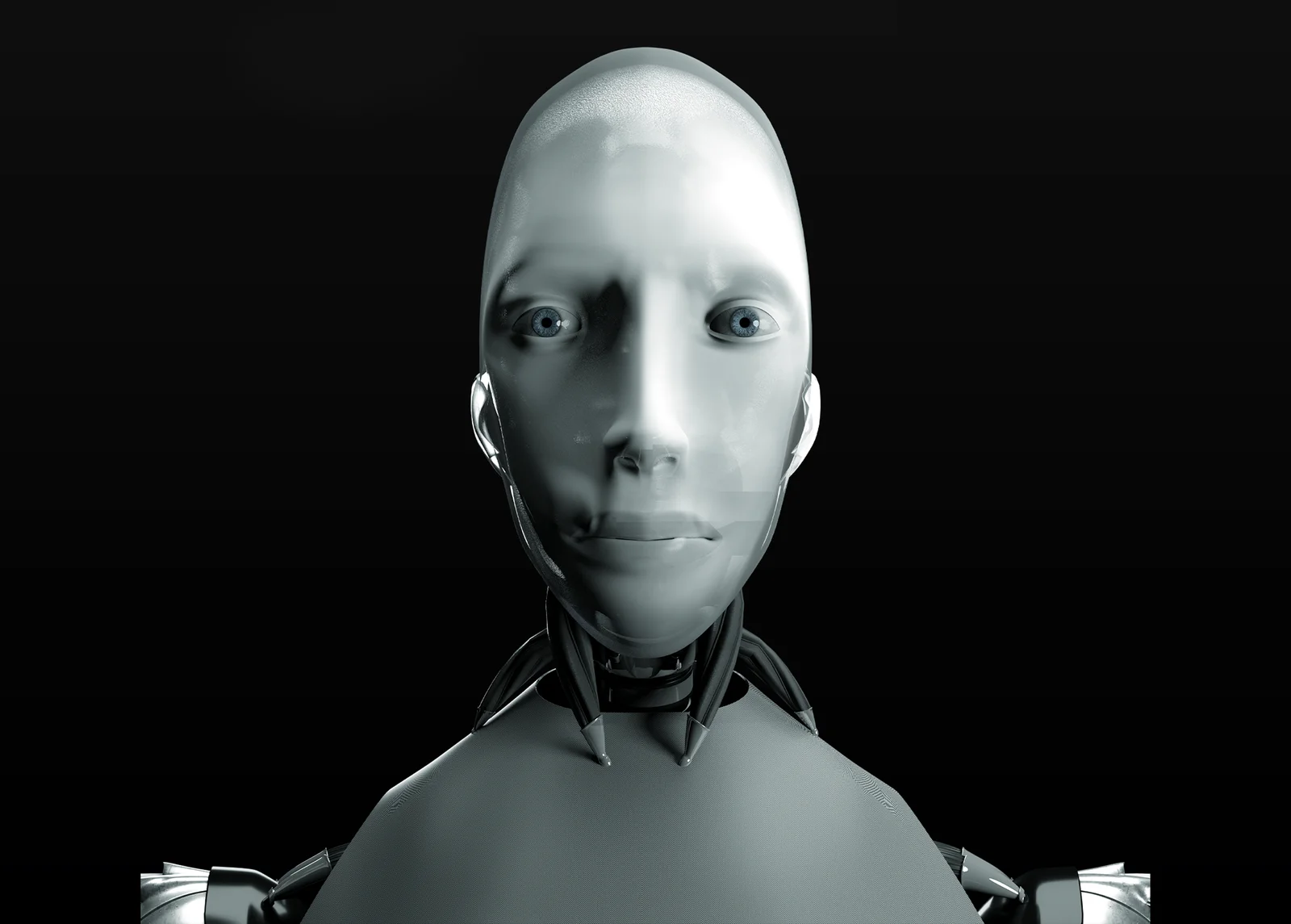 A 3D model of the humanoid NS5 robot from the film I-Robot. The asset features a semi-translucent faceplate, expressive eyes, and smooth ergonomic body contours that emulate a mix of metal and synthetic materials. The geometry emphasizes the clean lines, mechanical joints, and streamlined futuristic form characteristic of the NS5 design.