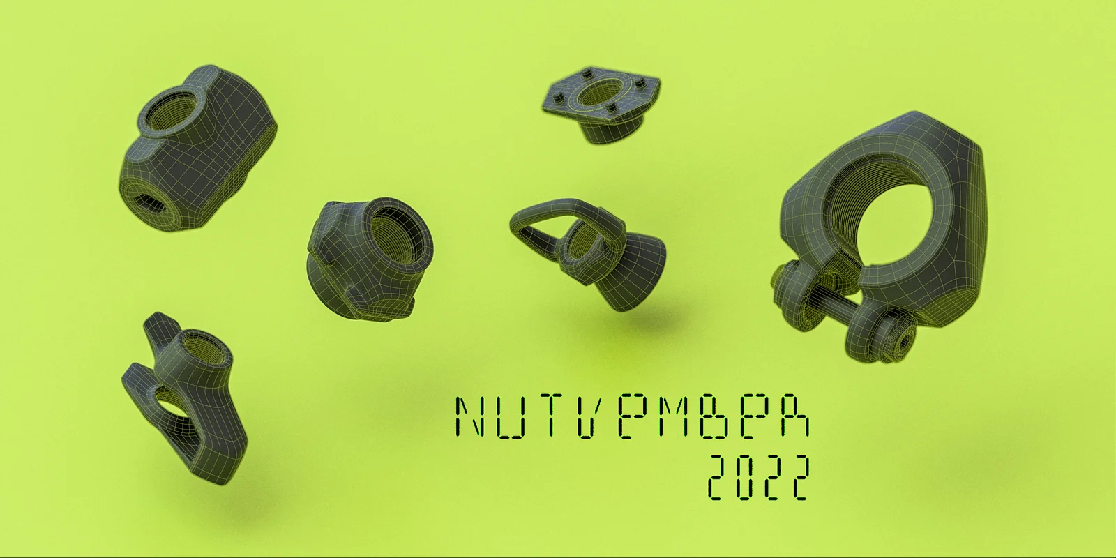 A kitbash collection containing 20 subdivision surface (SubD) nut models, along with accompanying bolts and washers. The assets are provided as a standard Blender file for appending or integration with the built-in Asset Browser. The collection is also formatted for deployment using the Kit Ops workflow.