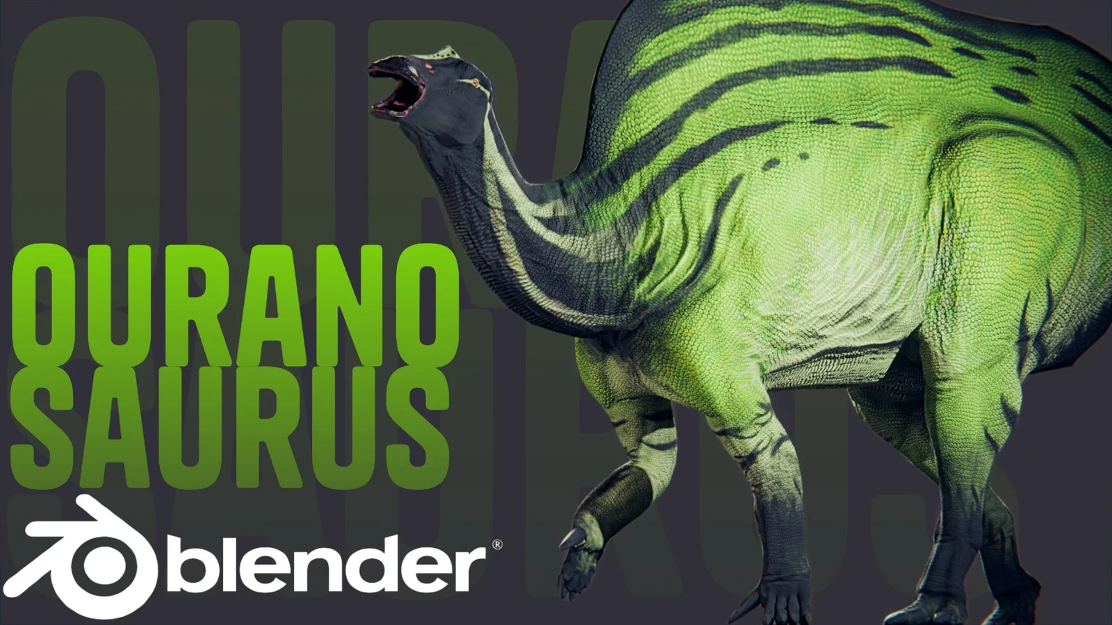 This product provides a 3D model of an Ouranosaurus nigerensis, complete with a real-time recording of the creation pipeline. The dinosaur model consists of 56,000 triangles and utilizes vector painting techniques. It is textured using 14 separate 2K UDIMs for the main body, alongside dedicated textures for the claws, tongue, and eyes. The included .blend file is configured for rendering with the Cycles engine.