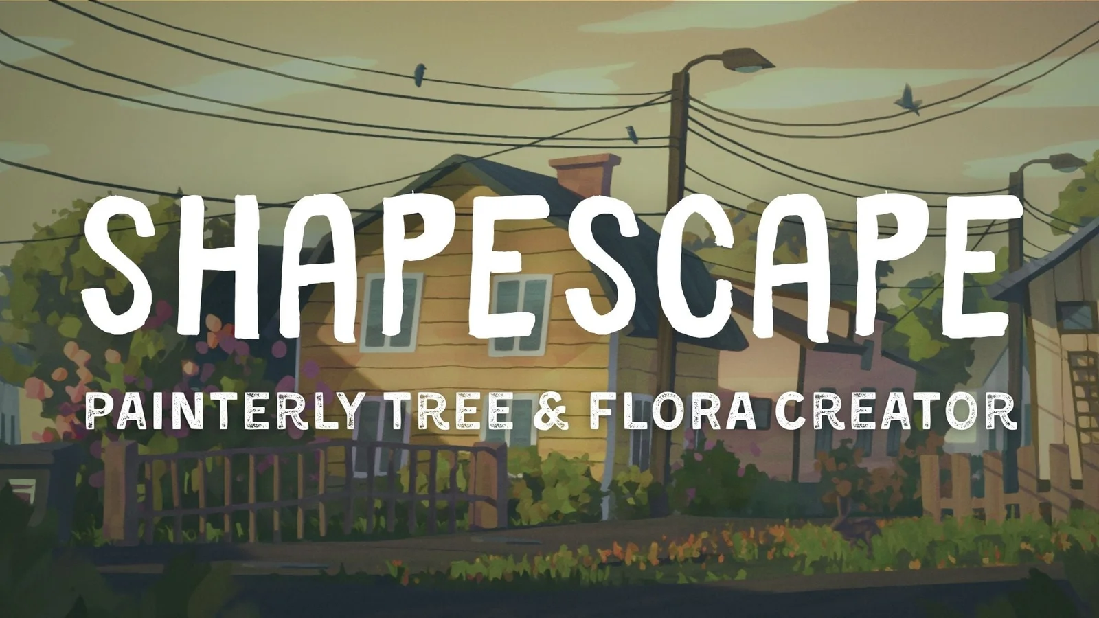 ShapeScape Studio is a procedural geometry node toolkit for generating non-photorealistic (NPR) trees, bushes, and grass in Blender's EEVEE engine. The system allows users to use custom base meshes to define the overall shape, size, and complexity of the generated foliage. It includes a specialized shader setup designed to map hand-painted texture atlases onto the geometry, facilitating a stylized, painterly aesthetic.
