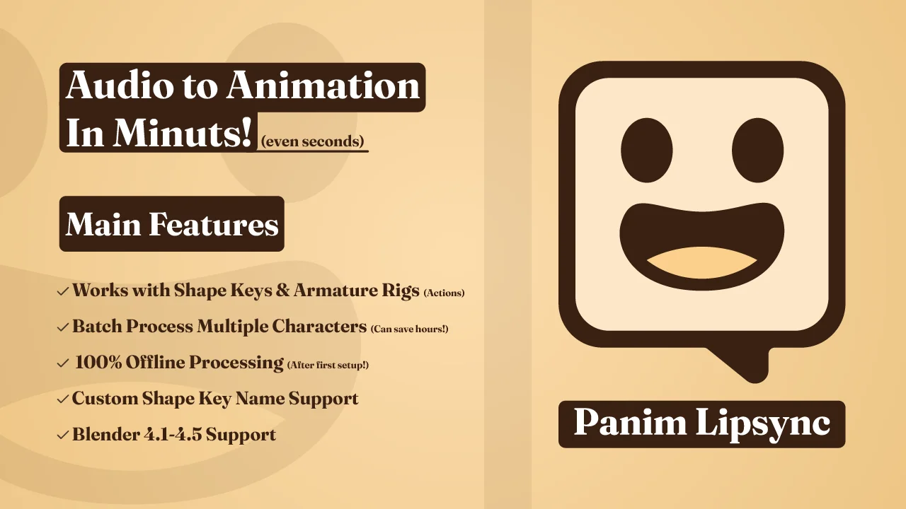 An AI-powered lip sync tool that automatically generates facial animations from audio files within Blender. It processes speech to detect phonemes and translates them into appropriate mouth movements using either shape keys or armature-based action rigs.