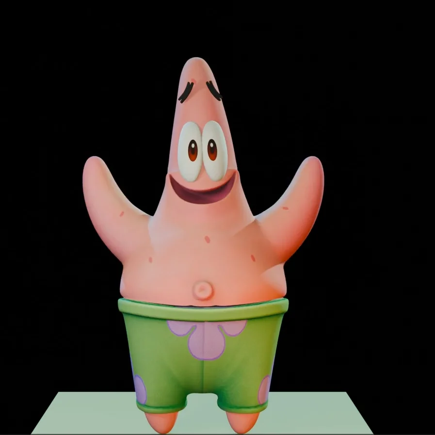 A rigged 3D character model of Patrick Star. The armature is constructed using the CloudRig framework, designed for character animation workflows in Blender 4.2 and above.