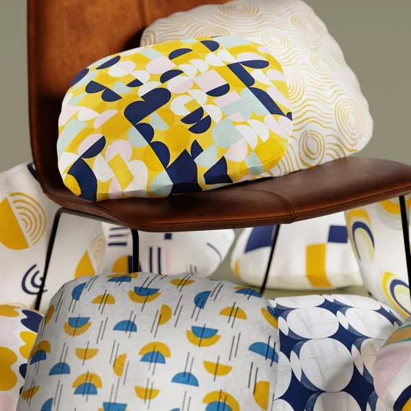 A collection of patterned fabric materials designed for Blender. The pack includes up to 16 distinct patterns and features customizable parameters for adjusting both the pattern scale and the overall texture size.