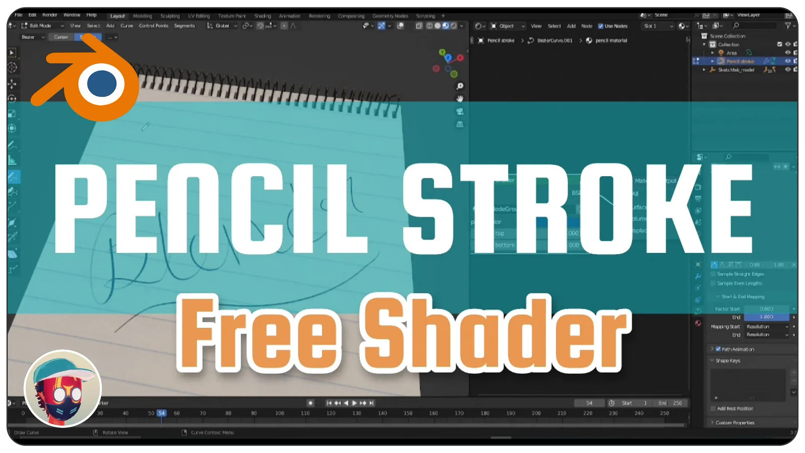 Pencil Stroke Shader is a customizable material designed to apply a natural hand-drawn pencil effect to curves in Blender. It features adjustable parameters for stroke width and color, allowing for artistic flexibility. The material can be copied directly onto existing curves in a project or used alongside the included sample pencil mesh.