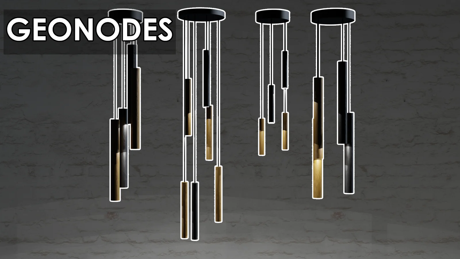 The Chimes Cluster Pendant Lamp is a parametric asset built with geometry nodes that allows you to generate custom lighting fixtures. The tool exposes various controls to modify the shape and composition of the pendant lamp to fit specific scene requirements.