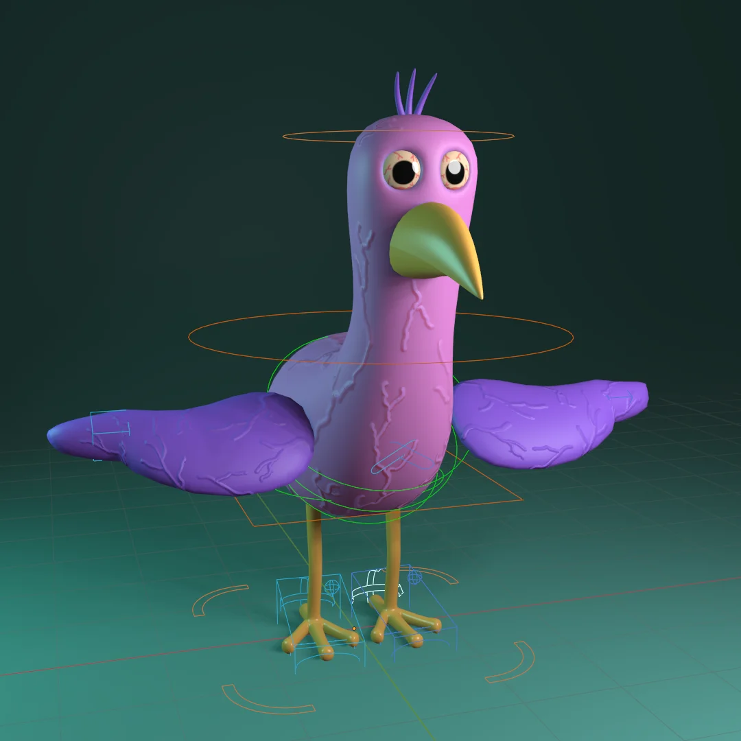 A 3D character model of Opila, provided in multiple variations. The base asset includes the unrigged 3D model. An advanced tier provides a T-Pose version equipped with a basic bone rig, preparing the character for manual animation or automatic rigging platforms like Mixamo. Additionally, an uncommented timelapse video of the complete modeling workflow is available, demonstrating the process from a primitive cube to the final asset with on-screen keystroke overlays. All project files contain the textures, materials, lighting setups, and scene elements used for the final presentation.