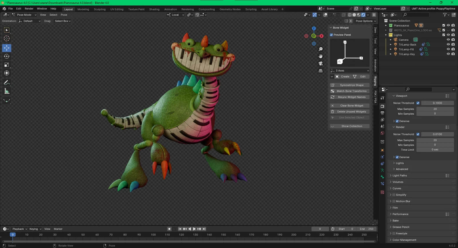 A rigged 3D character model of Pianosaurus. The asset was extracted from the game Poppy Playtime Chapter 4, developed by Mob Entertainment, and prepared for posing and animation in Blender.