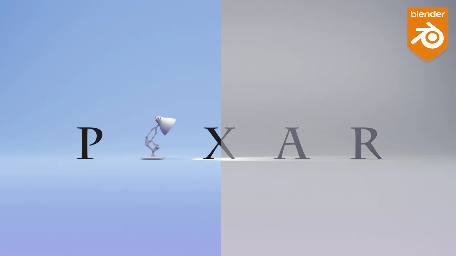 This project file provides a 3D reproduction of the classic Pixar logo. It includes the text geometry, the desk lamp model, and a complete lighting and shading setup. The scene is configured for rendering in both the Cycles and EEVEE engines.