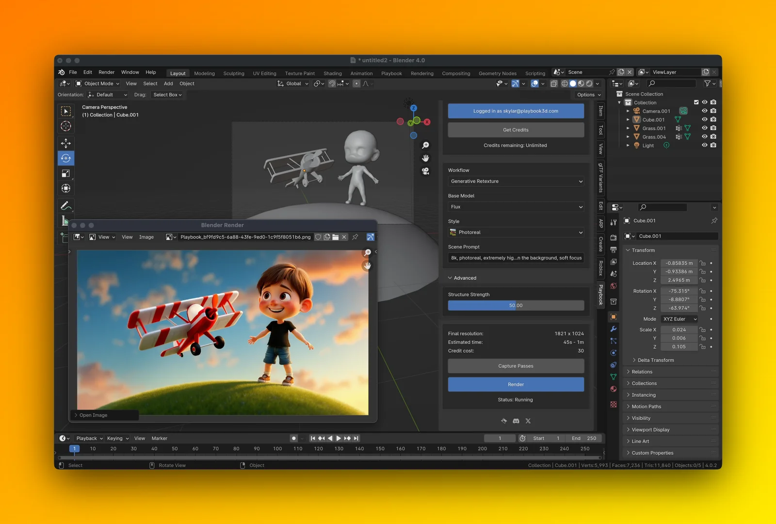 The Playbook plugin connects Blender to a generative media platform, enabling cloud-based diffusion rendering directly from the interface. It utilizes ComfyUI to process generative renders without requiring local hardware resources.