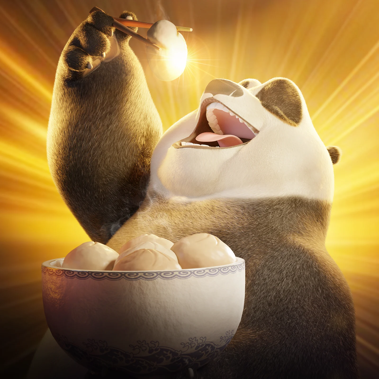 This product provides a 3D fan model of Po, the main character from the DreamWorks animated franchise Kung Fu Panda. The character is equipped with a functional armature generated using the Auto-Rig Pro addon. The model also includes a particle grooming setup for the character's fur and is configured to be render-ready.