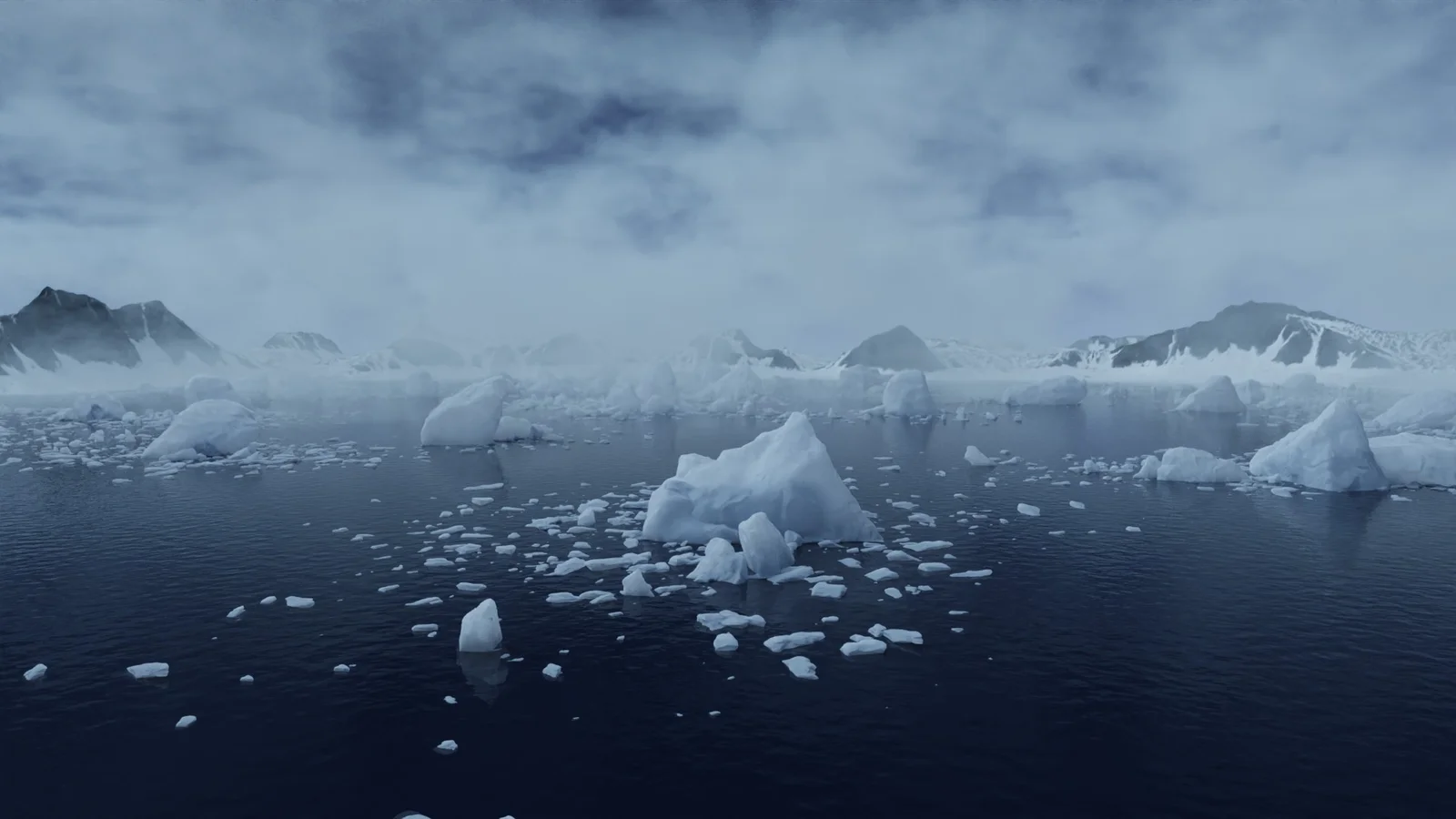 This is a complete polar landscape environment for Blender, featuring drifting ice floes and customizable lighting setups for both cloudy and sunny atmospheres. The scene is built for the Cycles render engine and utilizes 3D terrains originally generated in Gaea.