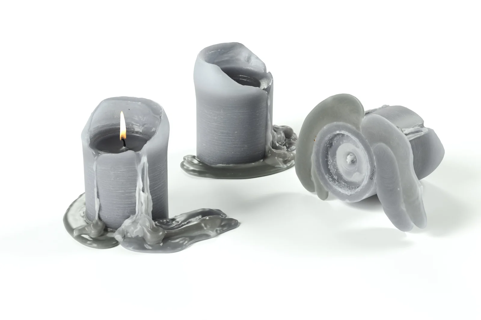A detailed 3D scanned model of a used, partially melted candle designed for adding realistic details to interior scenes. The asset includes a pre-configured material for Blender's Cycles render engine, allowing users to adjust the subsurface scattering settings to control the translucency of the wax. Standard FBX and OBJ formats are also included for broad compatibility.