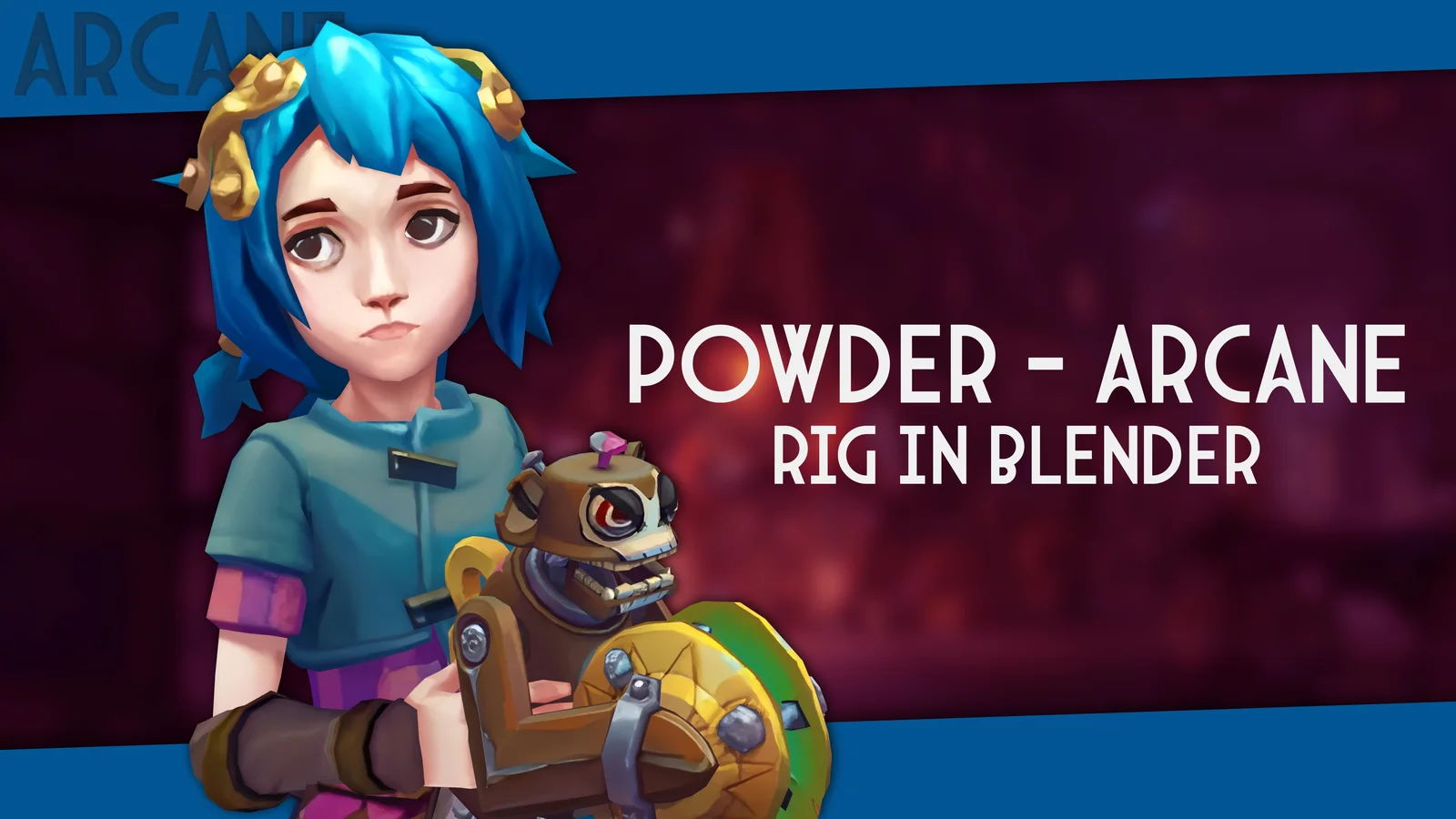 This product provides a rigged 3D character model of Powder from the League of Legends universe and the Arcane animated series. The base mesh originates from a RuneForge game mod developed by Scuttlecrab, which has been equipped with a custom rig for posing and animation in Blender. It is available strictly for personal use.