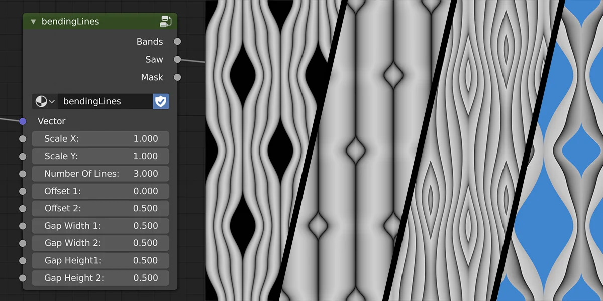 This product provides a procedural shader node group for Blender that distorts linear gradients and lines to create abstract patterns. It is compatible with both the EEVEE and Cycles render engines.
