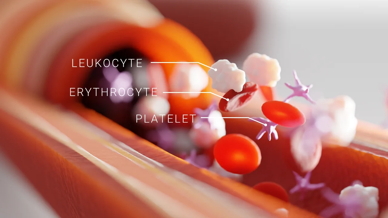 The tool provides built-in options to populate the interior of the vessel with red blood cells, white blood cells, and platelets. You can also bring the internal flow to life using the included animation controls, which handle both the motion and rotation of these cellular components within the bloodstream.