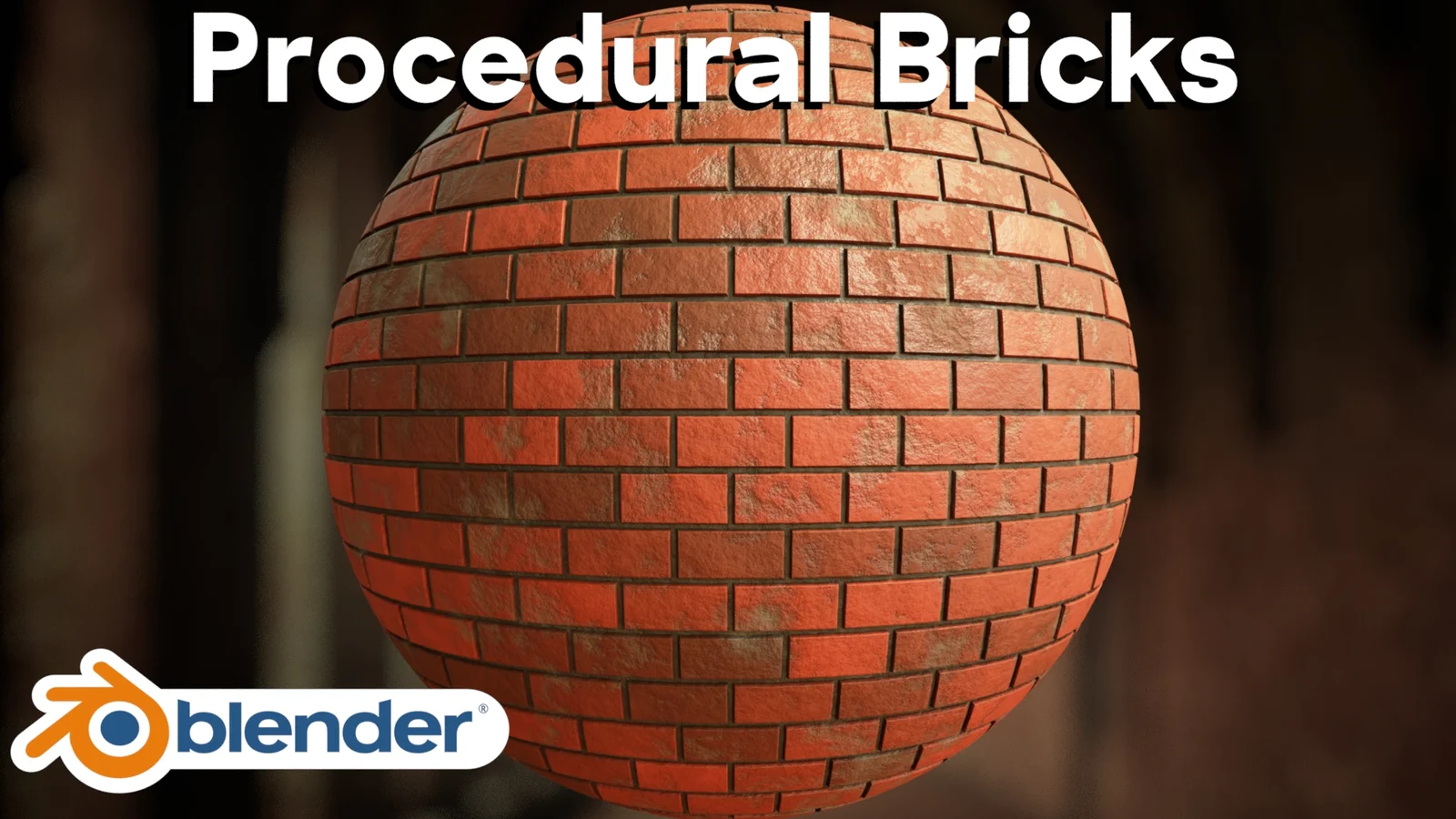 A procedural brick material generated entirely using Blender's shader nodes. The product includes the Blender source file containing the material setup, a sample final render, and the HDRI environment used for lighting the preview scene.