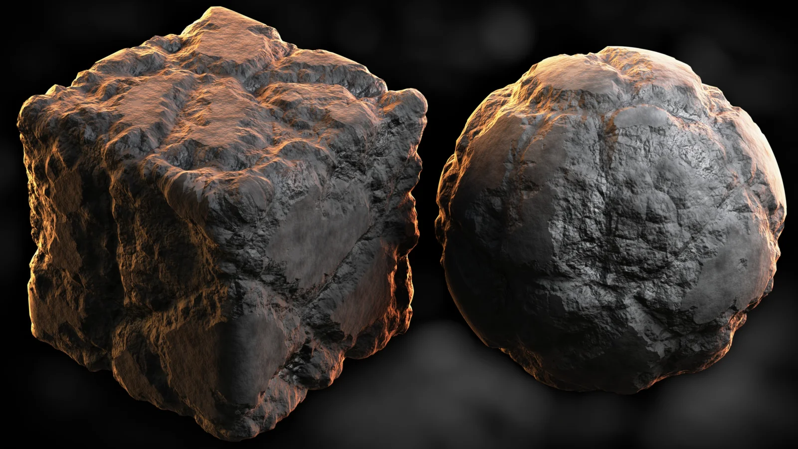 This asset provides a procedural chunky concrete material built entirely within Blender's Shader Editor. The material is packaged into a custom node group exposing various parameters for adjustment. Users can modify properties such as scale, base colors, fine detail levels, surface roughness, bump strength, and physical displacement directly from the node interface. The download includes the complete Blender file along with the necessary HDRI lighting setup used for the demonstration render.