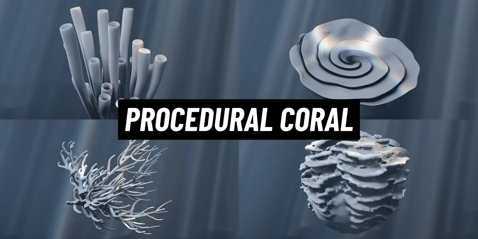 Procedural Coral is an asset library containing a collection of Geometry Nodes systems designed to generate coral and various underwater structures. The generators are customizable via the modifier stack or node tree inputs, allowing users to create unique variations. Several of the setups also include built-in animation support.
