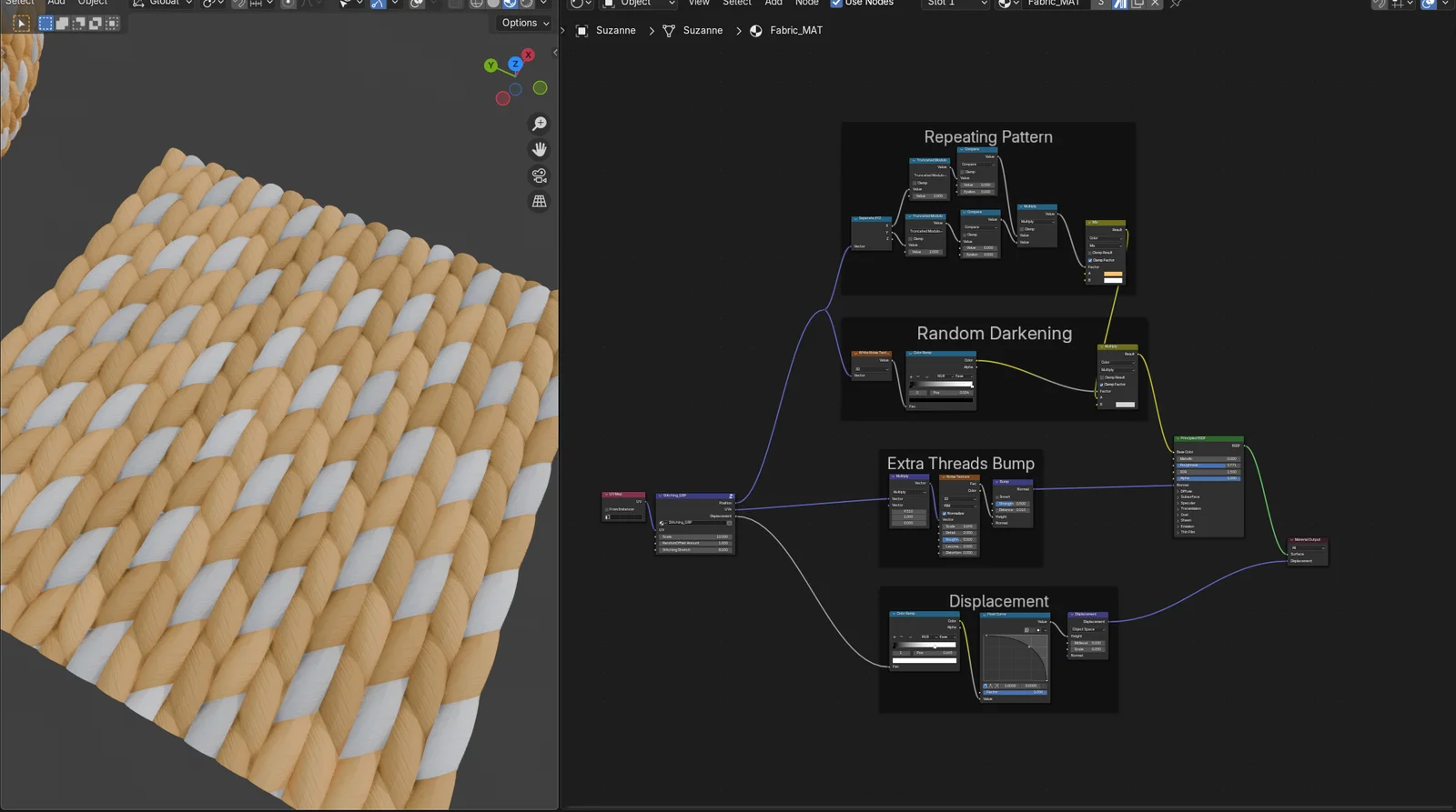 This procedural material generates knitted fabric surfaces in Blender. The shader provides customizable controls for adjusting textile patterns and introducing variation through randomness. It requires UV mapping to project the material accurately onto geometry.