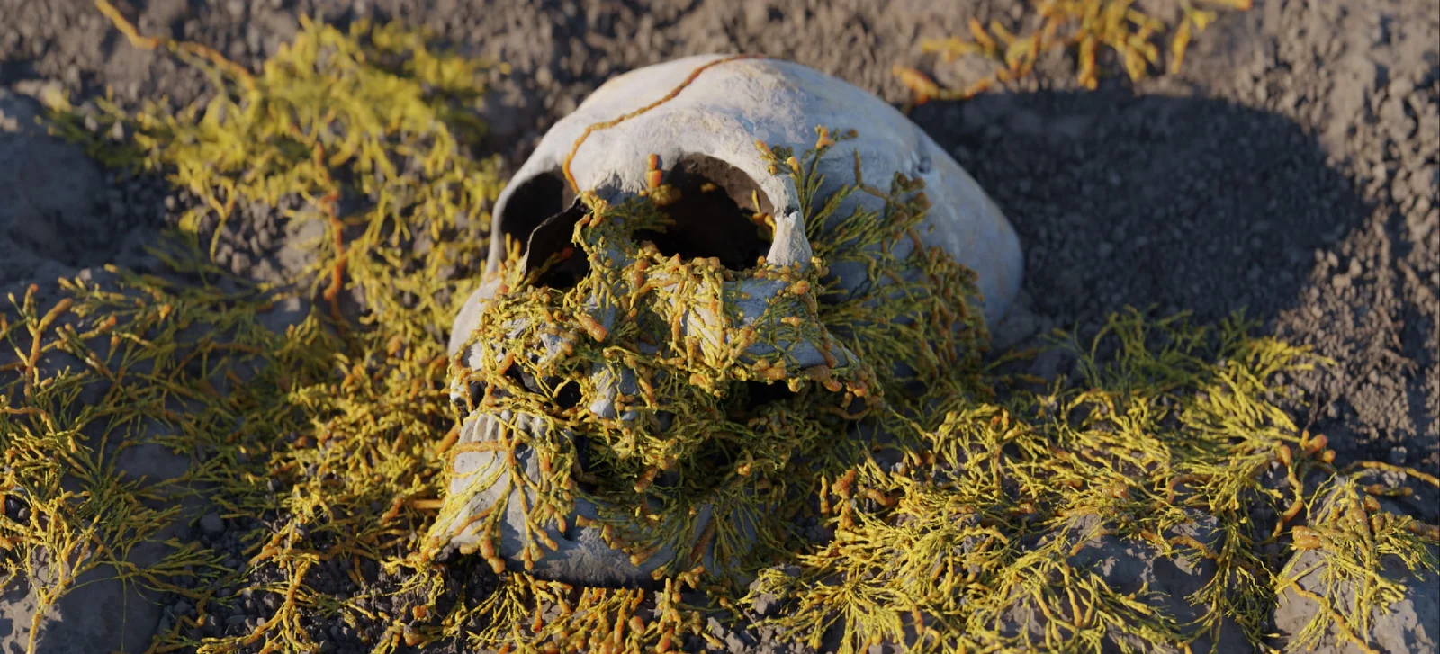 This Geometry Nodes tool generates animated fungus growth within Blender. By drawing curves, users can designate custom growth paths that automatically wrap around and engulf intersecting objects. The system includes customizable parameters to control the appearance and behavior of the growth, along with a procedural slime mold material.