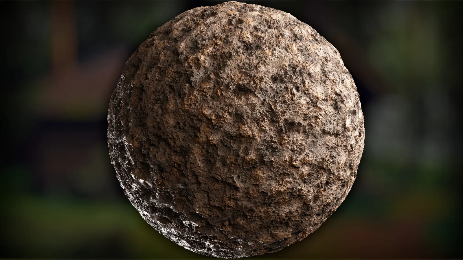 A procedural gardening soil material generated using Blender's shader nodes. The material is packaged into a custom node group containing adjustable parameters for scale, base colors, dirt clumps, roughness, and bump values. The download includes the Blender project file with the configured material and an HDRI environment map for lighting.