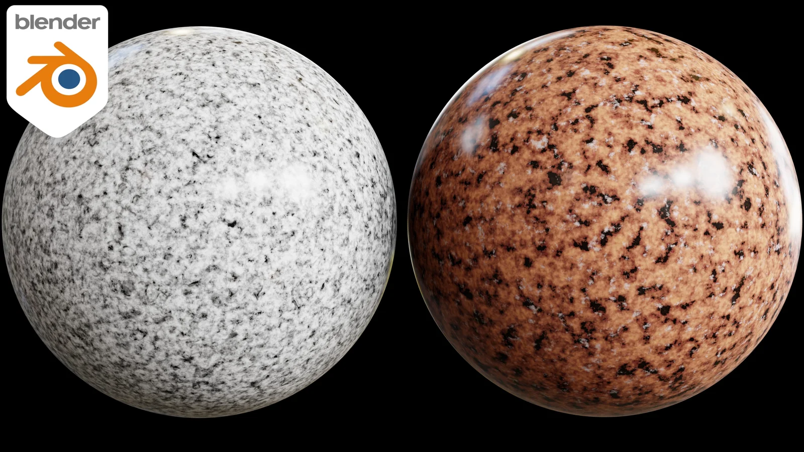 A pack of two procedural granite materials generated entirely within Blender using shader nodes. The package includes the Blender source file containing the node setups, alongside a final render image and the HDRI lighting environment used for the presentation scene.