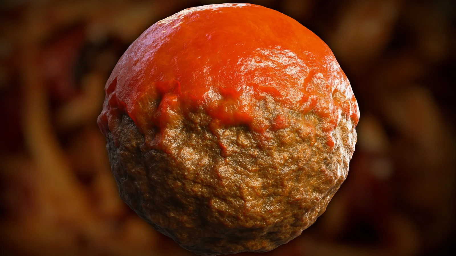 This product provides a procedural meatball material created using Blender's shader nodes. The included Blender file contains the complete node setup, as well as the final render scene and HDRI lighting used for presentation.