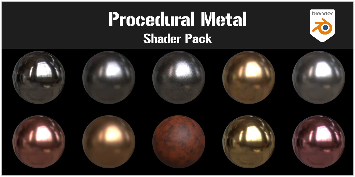 A collection of 10 procedural metal shaders built for Blender. Each material provides controllable parameters covering color, metallic value, surface roughness, and bump map intensity. This allows for simple adjustments to match specific project requirements. The materials are fully compatible with both the EEVEE and Cycles render engines and are provided in a single .blend file that can be appended directly or added to the Blender Asset Browser.