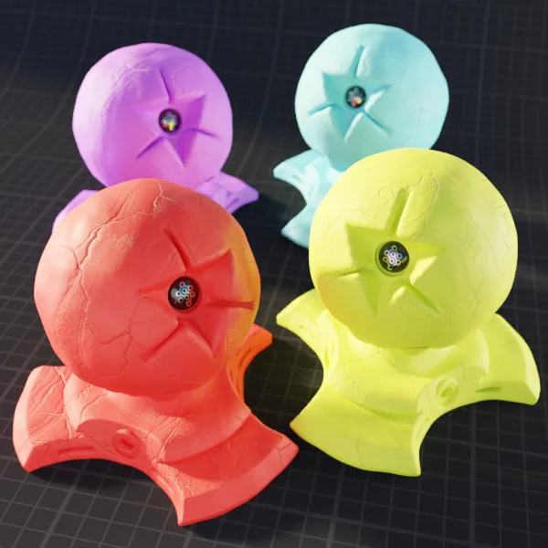 Procedural Modeling Clay is a procedural material for Blender that simulates the appearance of modeling clay. The material works in both Cycles and EEVEE render engines and does not require UV mapping to apply to geometry. It does not use displacement. The material can be baked using the free version of the Sanctus Library add-on.