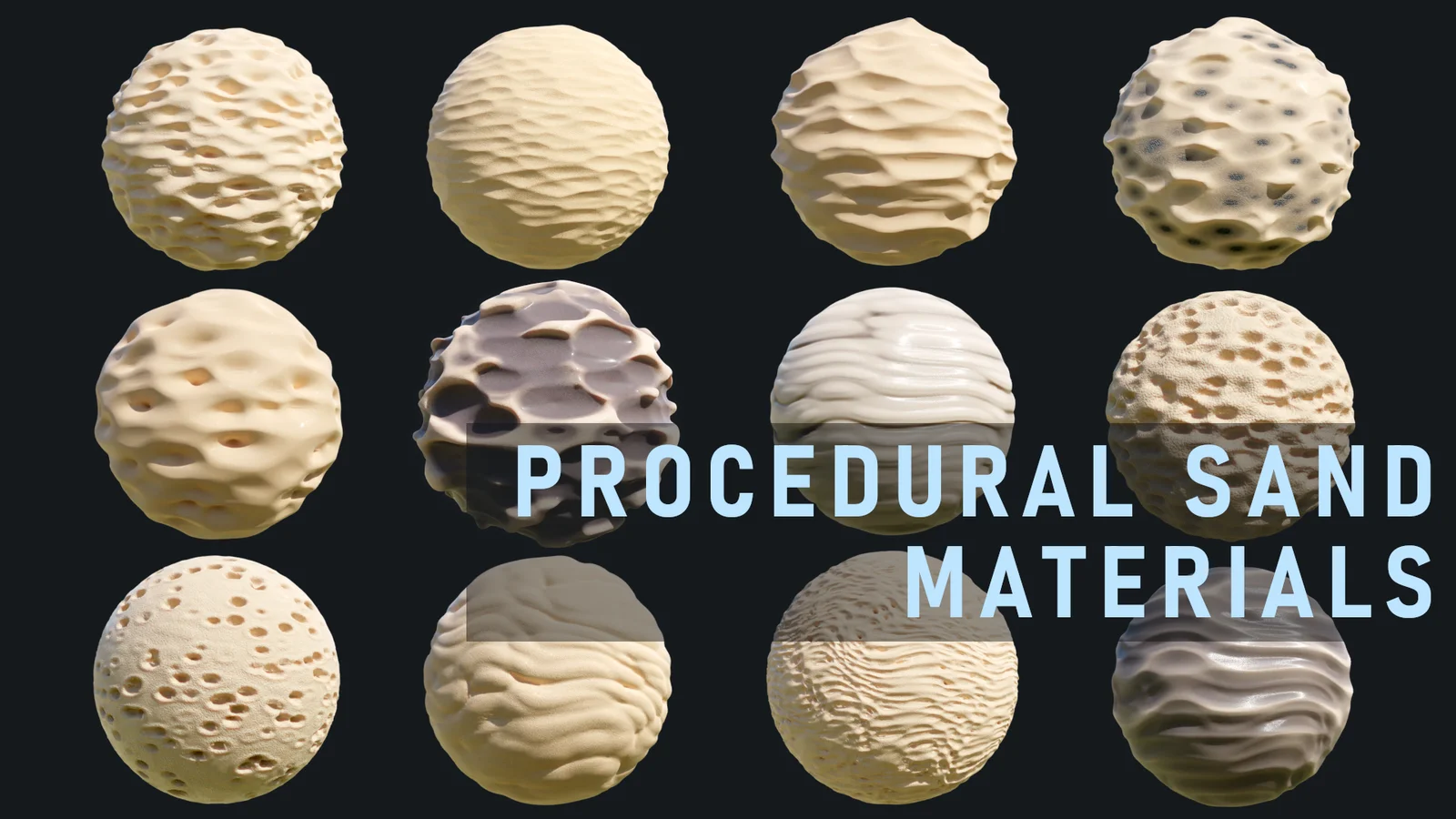 This collection provides a set of procedural sand materials designed for beaches, deserts, and underwater environments. The pack includes distinct variations such as wet sand for shorelines, soft sand for dunes, disturbed sand with footprints or crustacean tracks, and sand scattered over asphalt. Each material is packaged as a custom shader node group, featuring exposed length and width parameters to precisely control the overall texture scale.