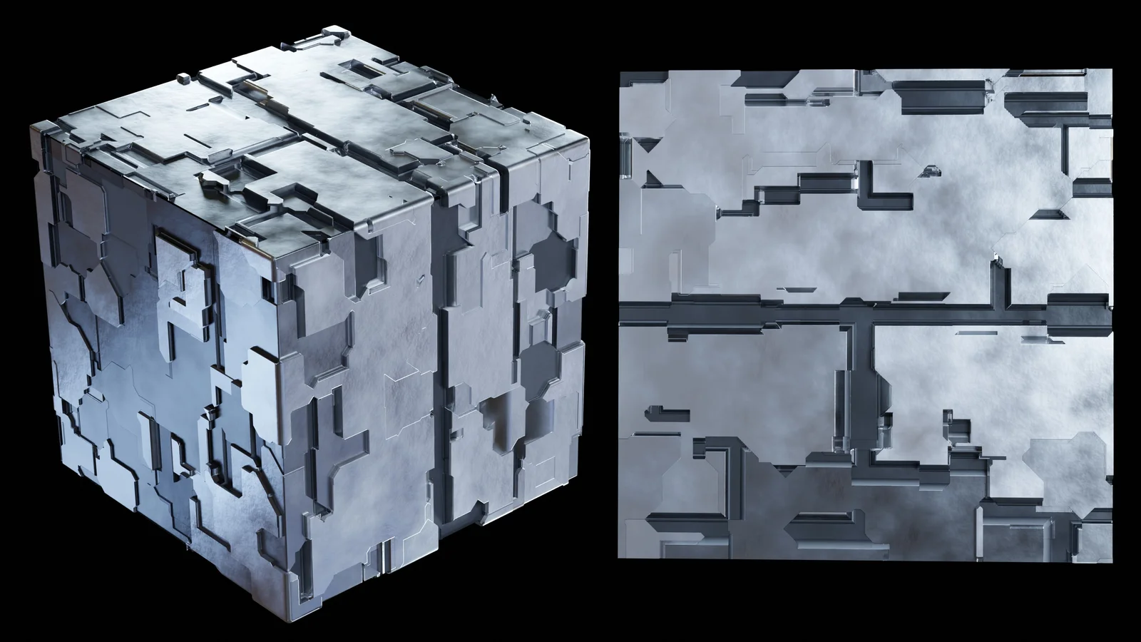 A procedural sci-fi panels material built in Blender's shader editor, designed as a companion to its related tutorial. The included Blender file provides the shader setup configured with a standard grey appearance out of the box. Users can modify the node tree's values and colors to generate custom variations of the paneling. The package also includes an HDRI lighting setup and a final render file.