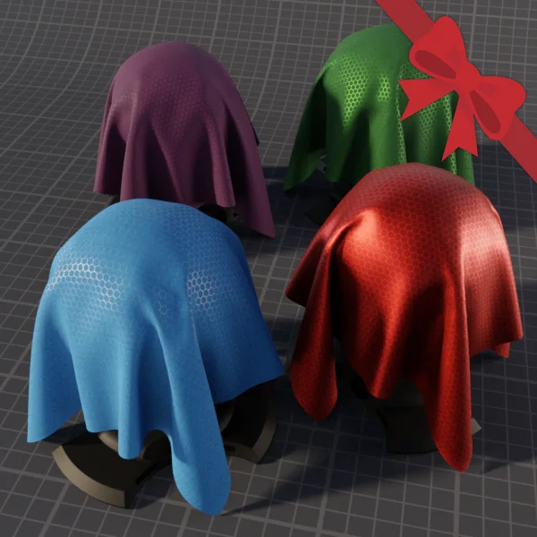 This procedural superhero fabric material is designed for use within Blender. It requires UV mapping to function correctly and is compatible with both the Cycles and EEVEE render engines. The material does not utilize displacement. It is provided as a .blend file and can be appended directly into scenes. It can also be baked into image textures using the developer's Sanctus Library add-on.