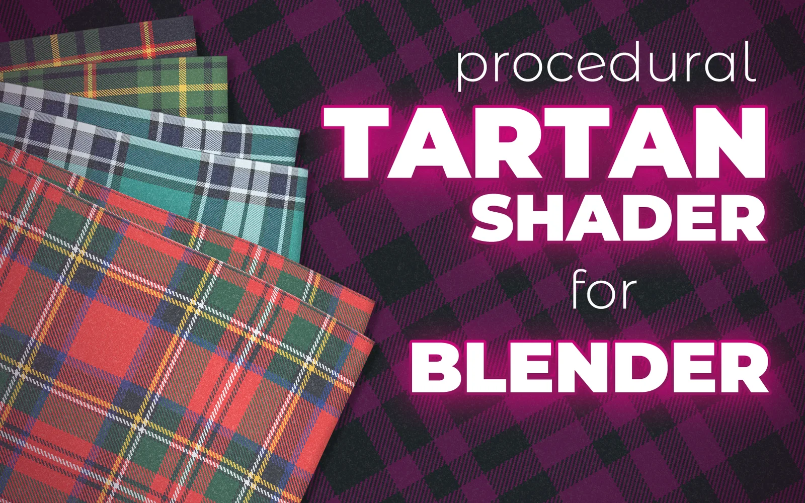 The Procedural Tartan Shader provides a node-based system for generating checkered tartan and plaid patterns. It includes three distinct node groups tailored for different workflows: a manual setup for visually matching reference photos, and two automatic setups (standard and symmetrical) designed to work with precise thread count data from online pattern generators. The package also comes with a library of 110 ready-to-use assets, comprising 40 two-color and 70 three-color shader variations.