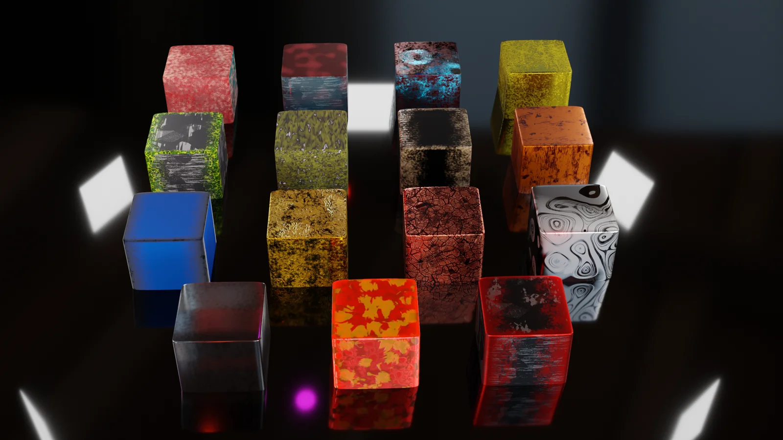 This collection provides a set of procedural scratched metal materials designed natively for Blender. The materials are fully customizable, allowing users to adjust scale, detail, and surface variations to fit specific project requirements without relying on external image files. Because they are generated procedurally through nodes, they are resolution-independent and minimize memory usage compared to image-based texture equivalents. They are suitable for texturing industrial scenes, machinery, vehicles, and architectural elements.