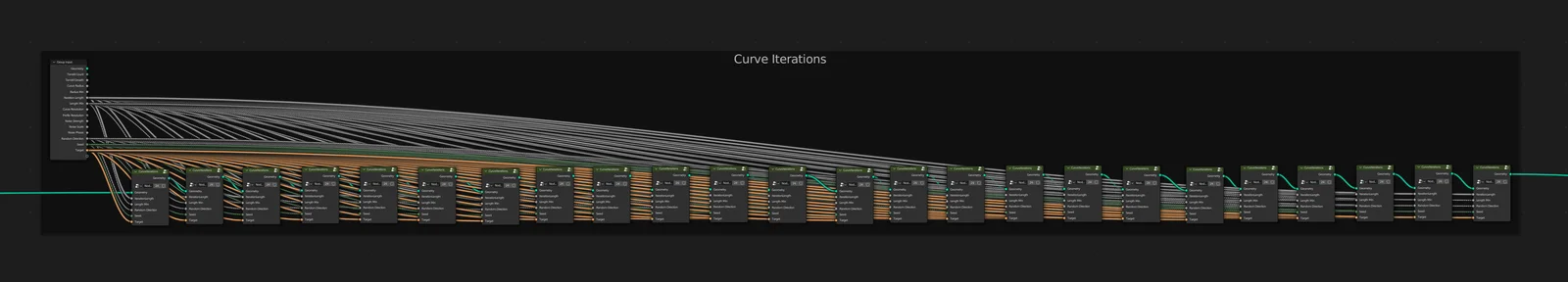 This geometry nodes system procedurally generates tendril-like splines that grow across the surface of any object. It is designed to create organic, advancing growth patterns reminiscent of parasitic forms or the Marvel character Venom. The system includes an accompanying animated displacement material to enhance the organic look of the tendrils.