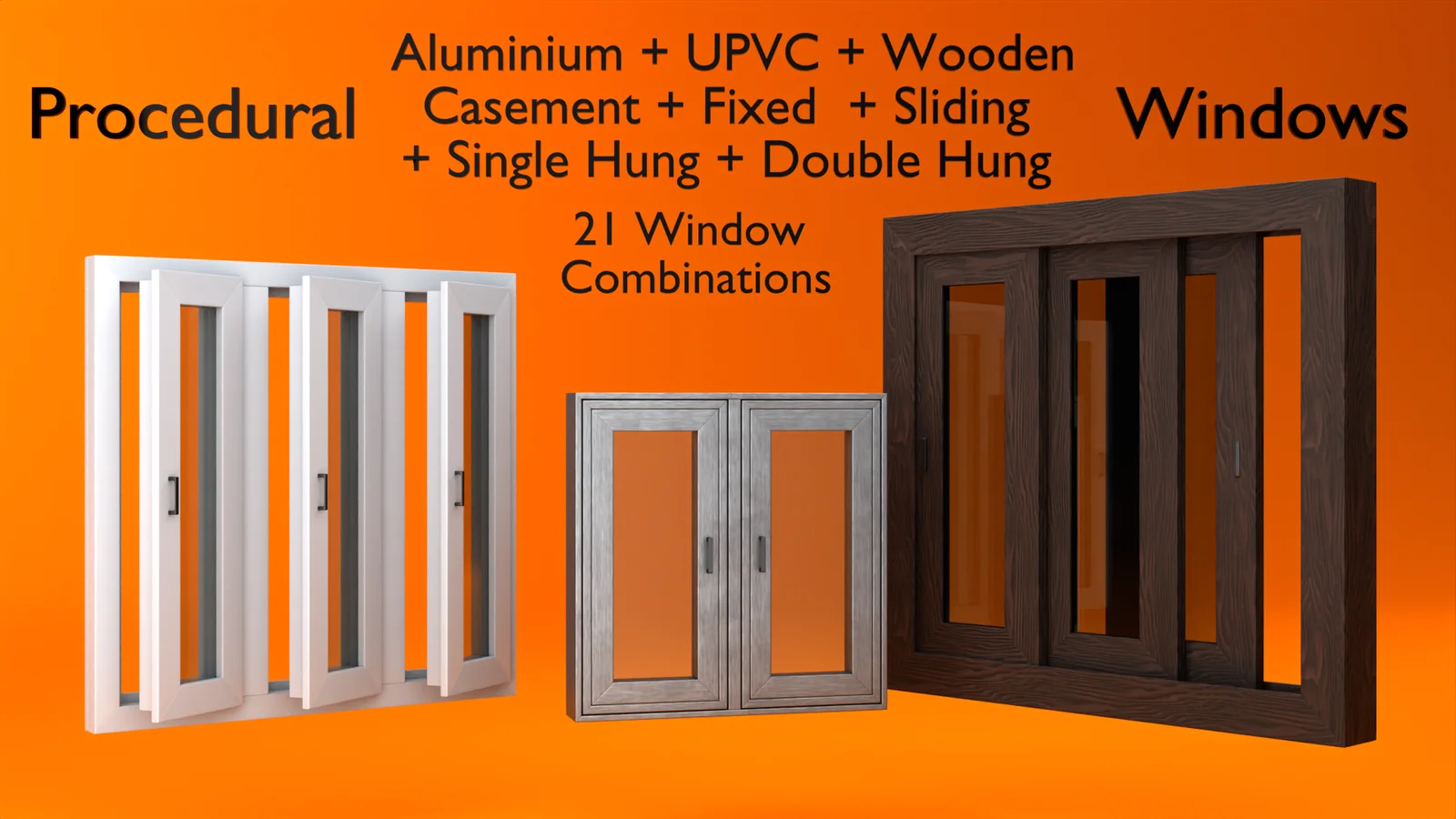 Procedural Windows is an add-on that utilizes a node-based system to generate parametric window models directly in the viewport. It supports five main window styles: casement, fixed, sliding, single-hung, and double-hung. Each generated window includes appropriate profiles and sections based on the selected type.