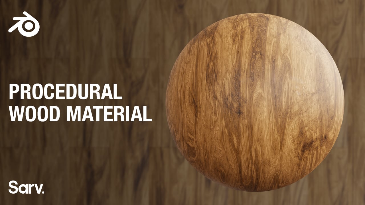 A procedural wood material designed for Blender. The material is provided within a Blender project file and can be appended directly into scenes or the asset manager. The package includes the procedural node setup, an environment HDRI for lighting, and rendered preview images.