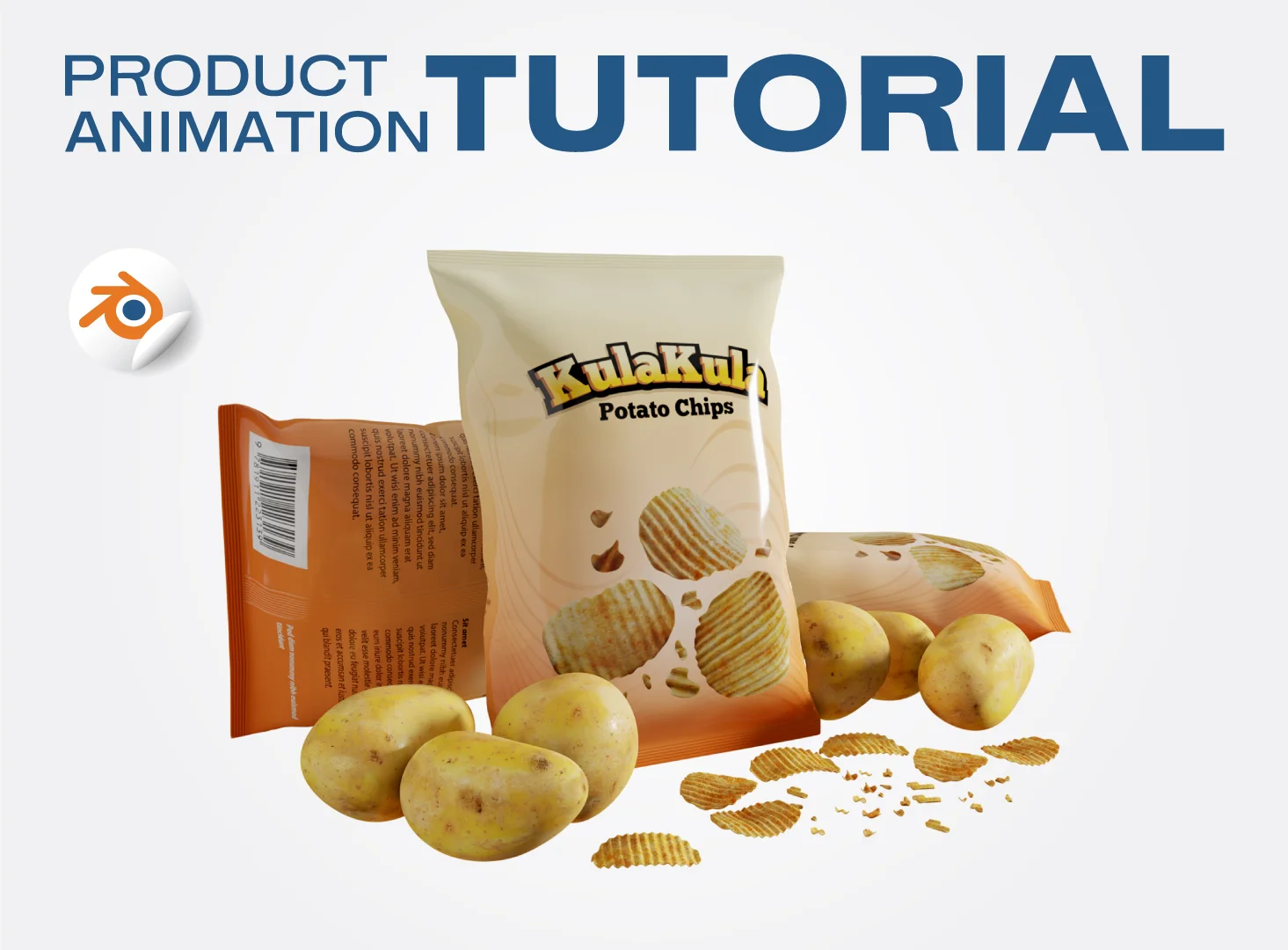 This comprehensive tutorial series guides users through creating a 3D product animation for a potato chips brand using Blender. The course covers the complete workflow from scene setup to final video editing.