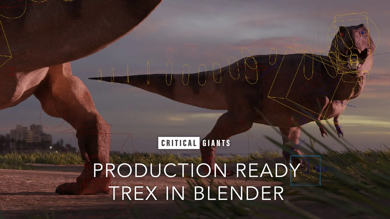 A fully rigged and textured Tyrannosaurus rex 3D model created entirely in Blender. The package provides the creature in several fidelities to support different workflows. It includes a high-poly version with vertex paint, a multiresolution mesh with textures, a film-ready variant with displacement maps, and a game-ready version optimized with normal maps. The provided rig features inverse kinematics (IK) controls and includes a pre-posed scene file.