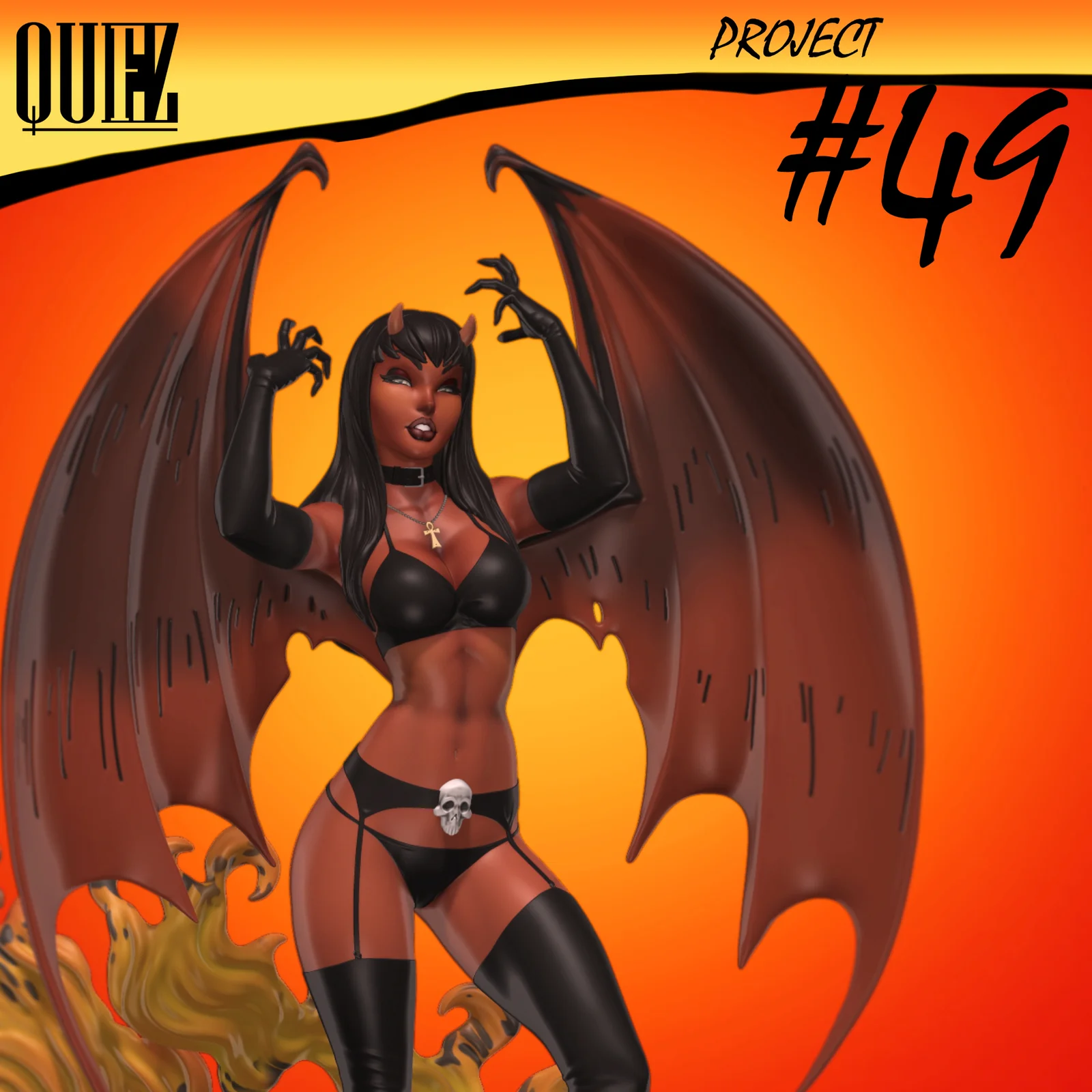 A 3D printable model of the comic book character Purgatori, designed in the art style of J. Scott Campbell. The model is scaled to 1/6 size, standing at 377mm (14.8 inches) tall. It is provided as an STL file, ready for 3D printing, and can be scaled directly in your slicing software.