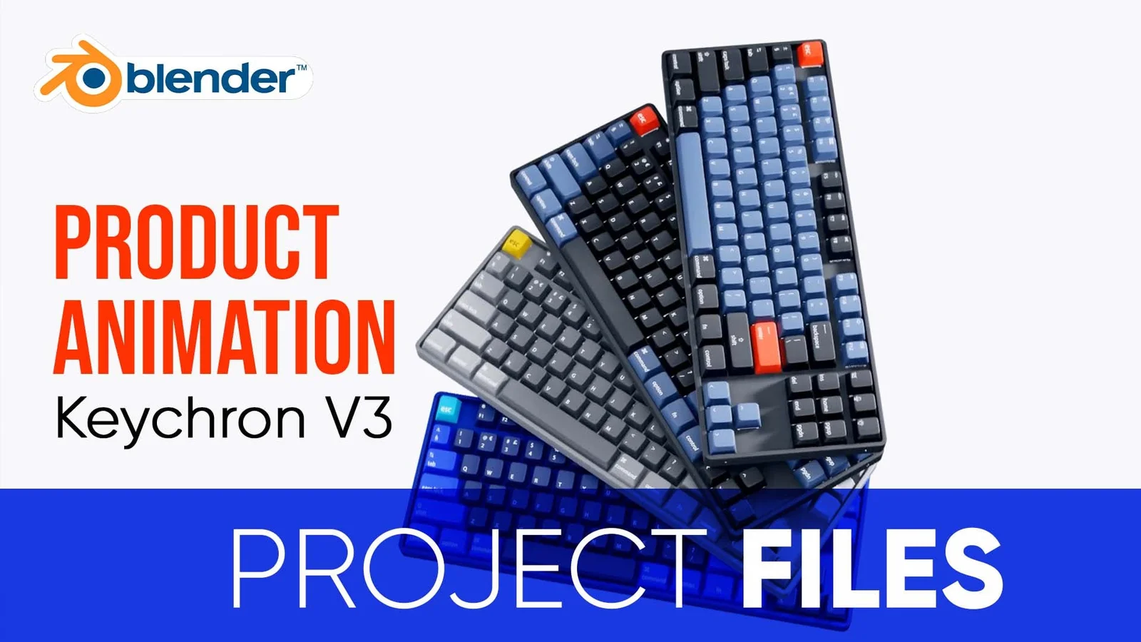 This collection provides the complete Blender project files used to create a Keychron keyboard product animation. The package includes eight separate Blender files, featuring one primary file that contains all the 3D models, alongside seven individual scene files configured for the animation sequences. The project encompasses the entire production pipeline, demonstrating the setup for modeling, texturing, shading, animation, lighting, rendering, and final video editing within Blender. All image textures are packed directly into the files to prevent missing pathways, though a provided video texture requires manual linking for scenes six and seven.