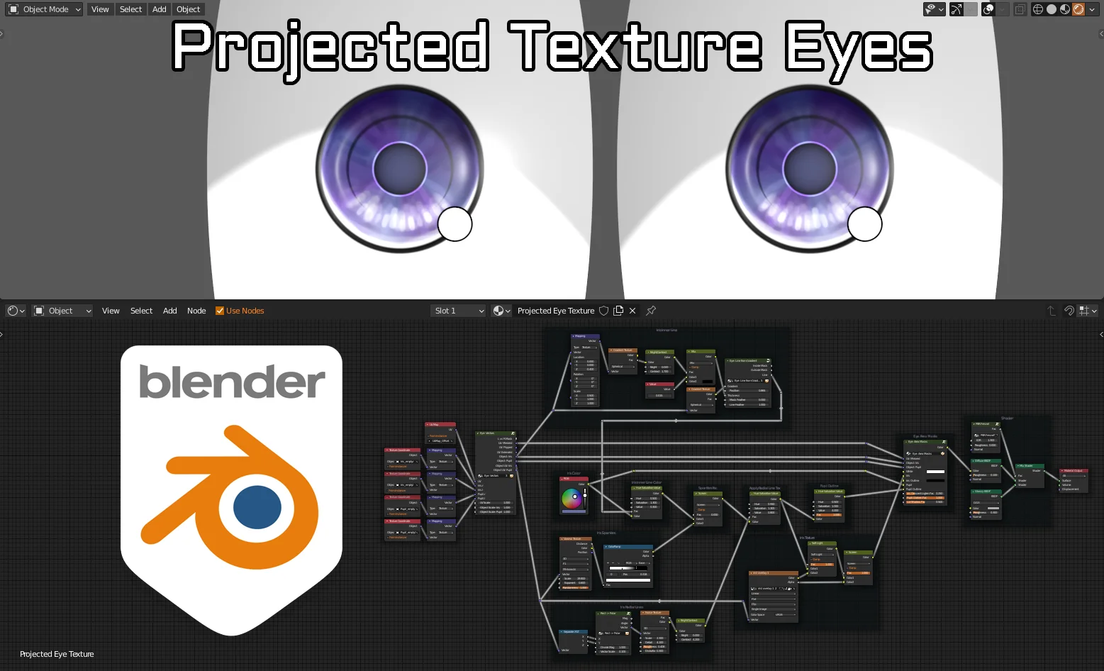 This project file provides a rigged set of stylized eyes that uses texture projection instead of moving physical geometry. By shifting the texture and iris displacement across the mesh surface, the setup allows for the exaggerated proportions and movements commonly needed in toon character animation.