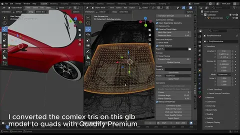 Quadify is a quad remeshing add-on that converts complex, dense, or triangulated meshes into clean quad topology. The tool prioritizes edge flow and structural consistency to generate results suitable for rigging, animation, and deformation.