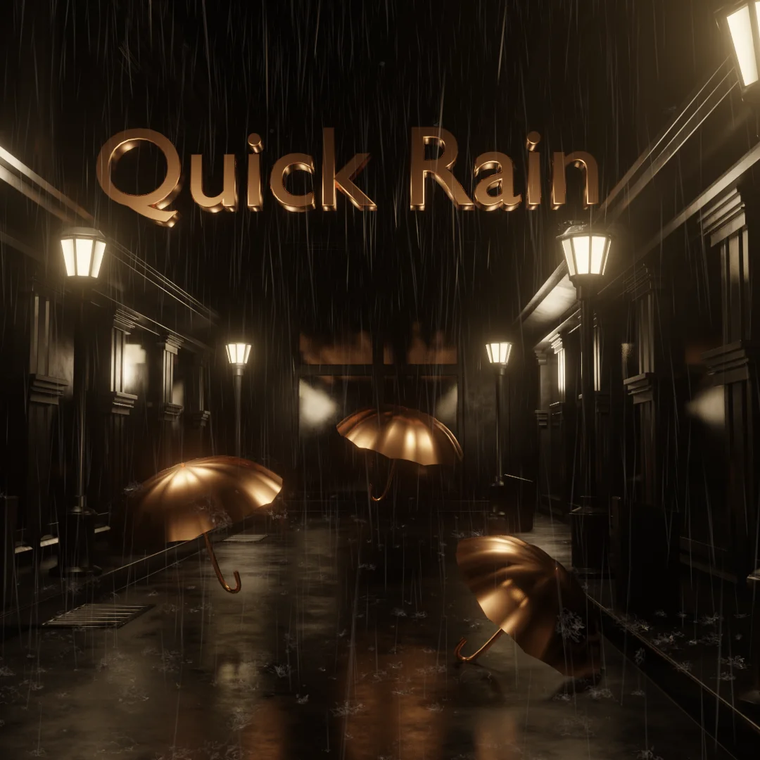 This asset provides a procedural rain setup using a combination of a geometry nodes modifier and a custom shader node group. It allows users to add rain to a scene without relying on physics simulations. By assigning a collection of objects to the collision input, the rain will interact with the designated environment geometry automatically.