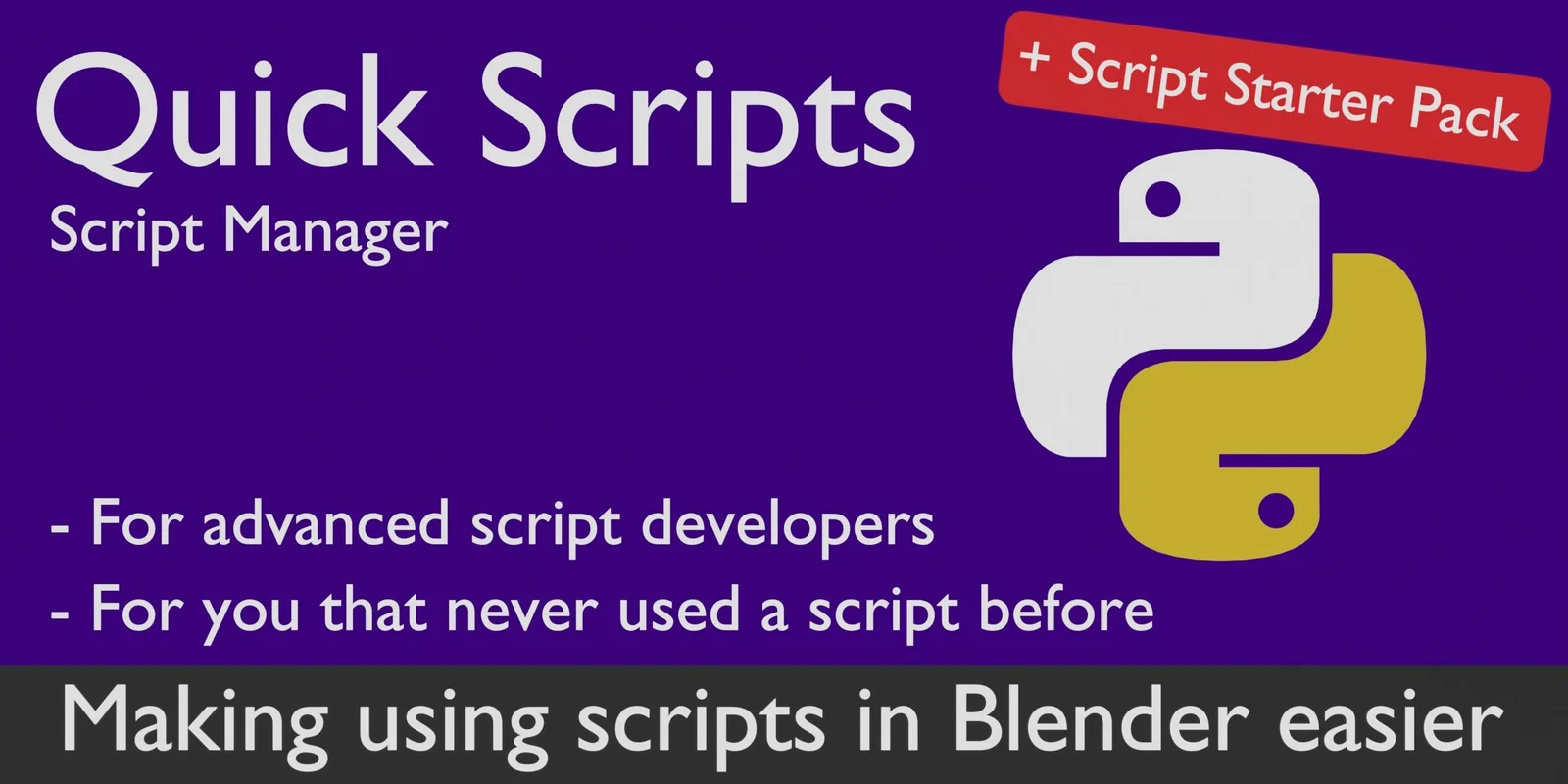 Quick Scripts provides a dedicated interface for organizing and executing Python scripts directly within Blender. It acts as a library manager, allowing users to store custom code snippets, mark frequently used tools as favorites, and launch scripts with a single click. The tool includes a fast-edit feature to modify code on the fly and supports modal scripts. It also comes with a starter pack of practical scripts for those new to scripting.