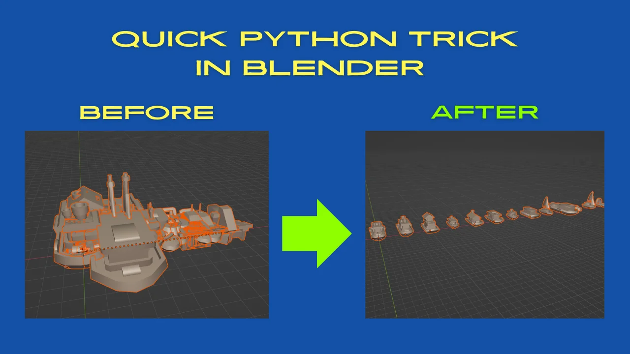 This Python script for Blender aligns and organizes multiple objects along the X-axis. Users can adjust the spacing between objects by modifying the script parameters directly. The script is designed to be executed from within Blender's Scripting workspace.