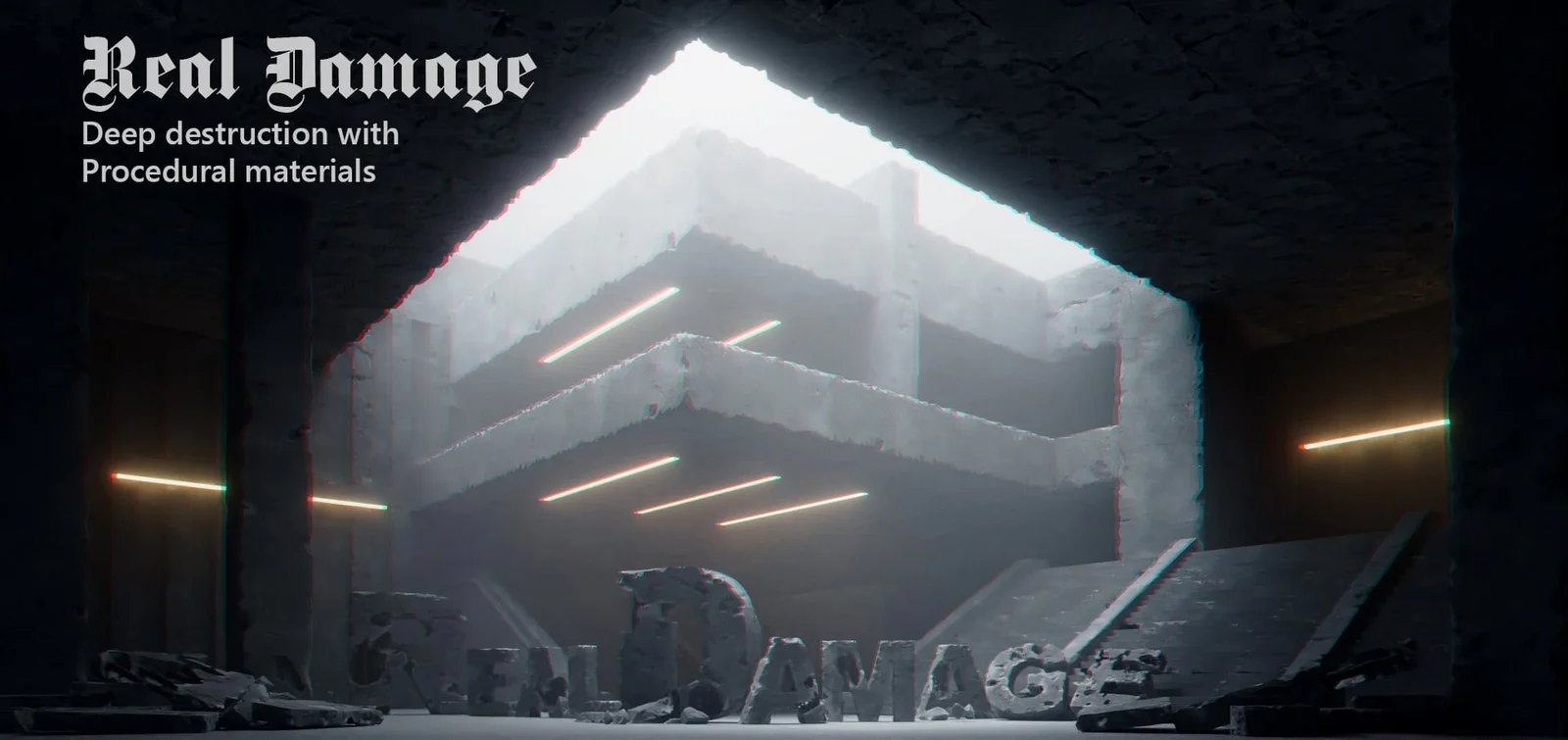 Real Damage is a tool that generates deep structural damage within existing geometry. It allows users to control destruction parameters such as depth, scale, roughness, and mesh density. The tool includes a feature to generate internal steel reinforcement grids with customizable properties, including grid type, density, noise, and polygon count. It automatically applies procedural concrete and steel materials to the affected areas and supports processing multiple selected objects simultaneously.