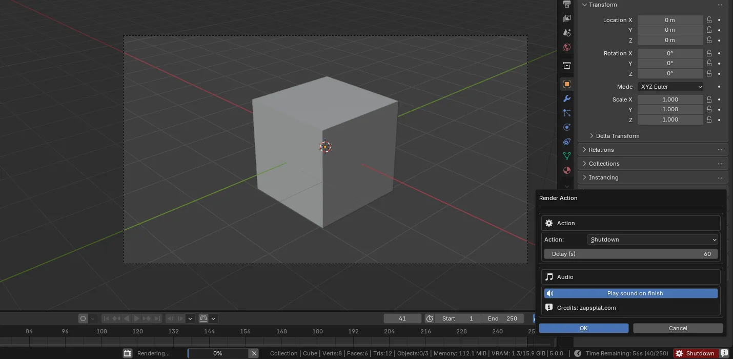 Render Action is an add-on that tracks rendering progress and estimates the remaining time based on recent frame completion averages. It displays this information, including the ratio of completed to total frames, directly in the Blender status bar and Render View. Additionally, it allows users to schedule system-level actions such as shutting down, sleeping, or restarting their computer automatically once a render sequence is complete. The tool supports cross-platform commands for Windows, macOS, and Linux, and includes an optional audible alert that plays when a render finishes.